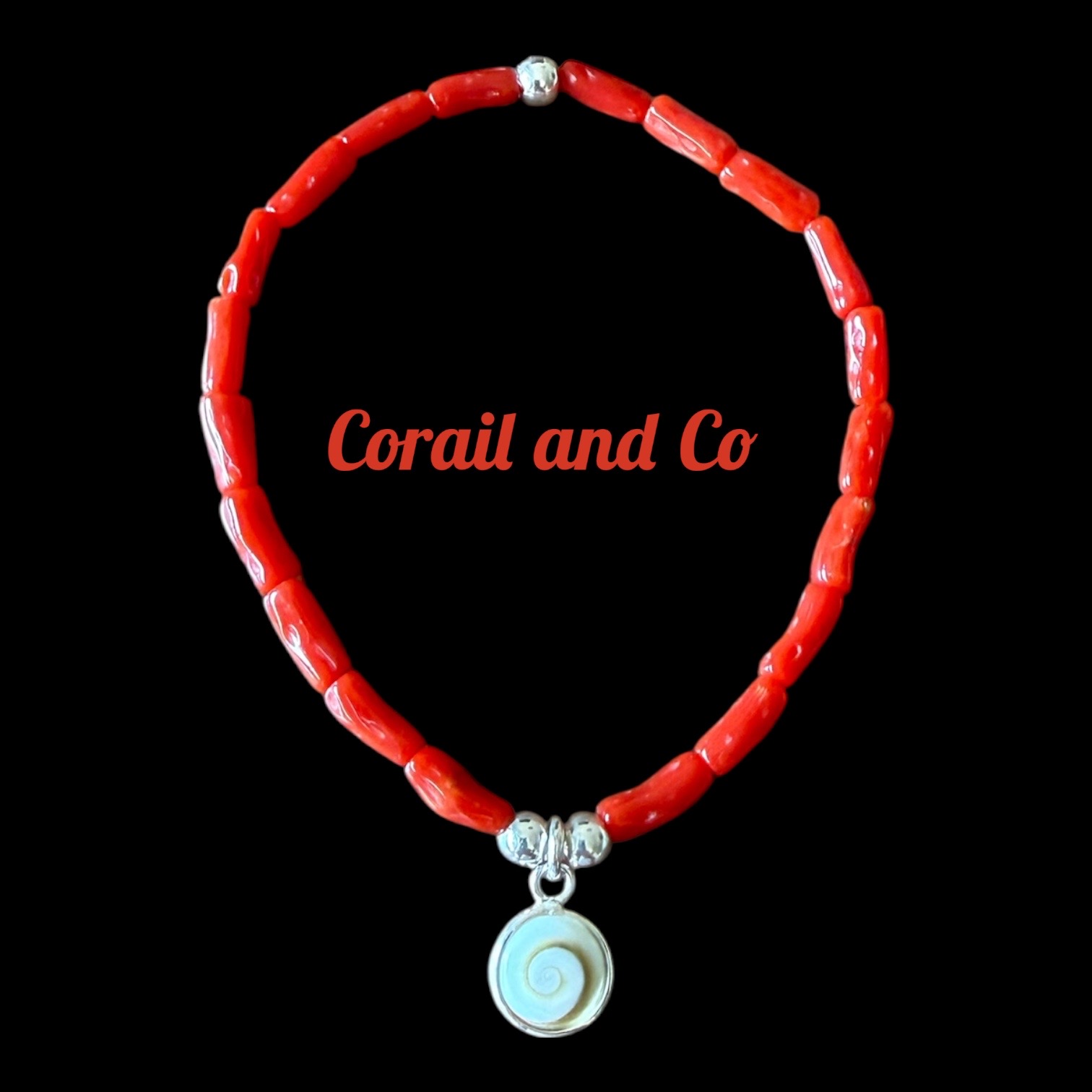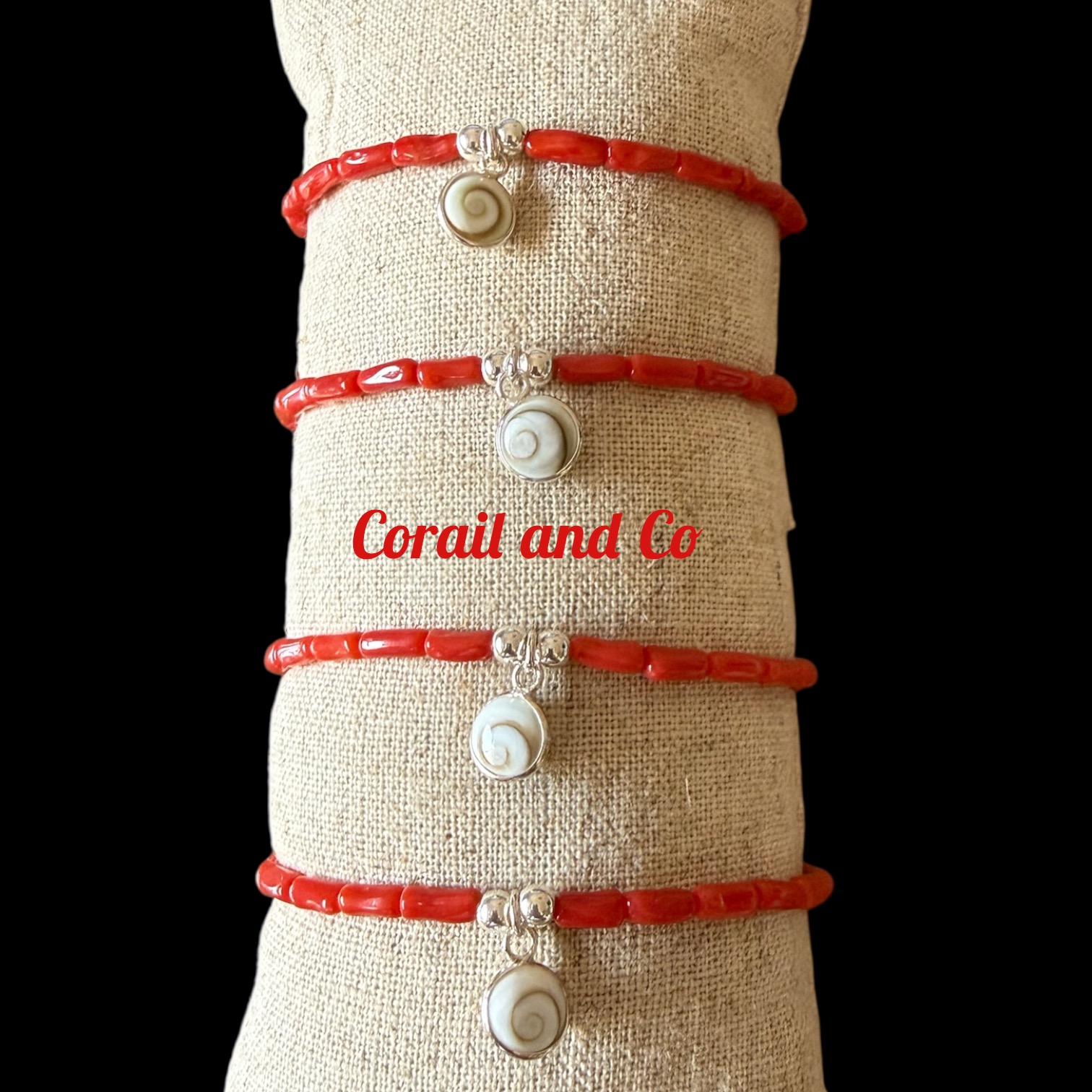 Bracelet Corail rouge/Oeil St Lucie/Nacre/ Argent