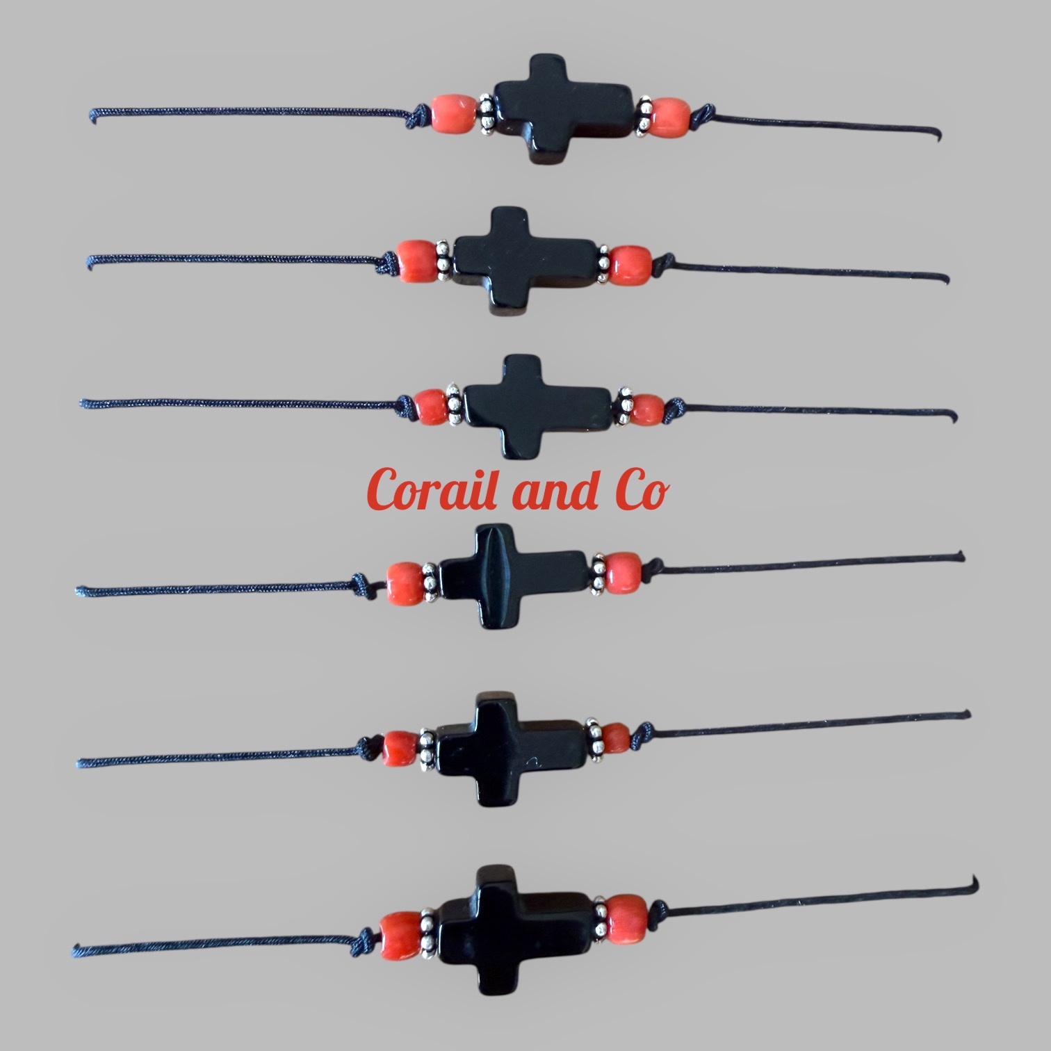 b) Bracelet mixte croix onyx / Corail /argent 15.0 EUR Bracelet Mixte Croix Onyx, Corail et Argent sur Cordon Noir Laissez vous guider par la puissance mystique ce bracelet bracelet croix onyx et corail rouge de Méditerranée  . A porter au  quotidien...