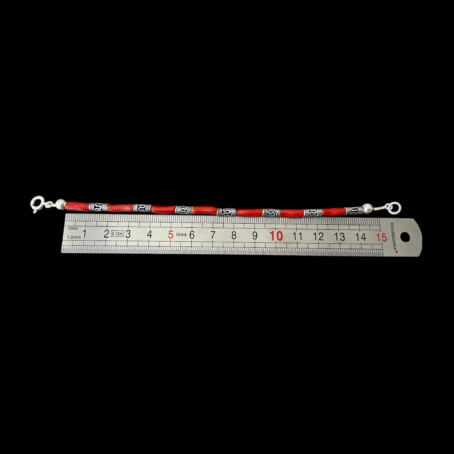 Découvrez l'authenticité et le charme de notre Bracelet Corail Tubes/Perles d'Argent, une pièce exceptionnelle qui allie la beauté naturelle du corail rouge de Méditerranée et le raffinement des perles d'argent finement travaillées. Ce bracelet incarne l'élégance et le style, parfait pour sublimer toutes vos tenues.