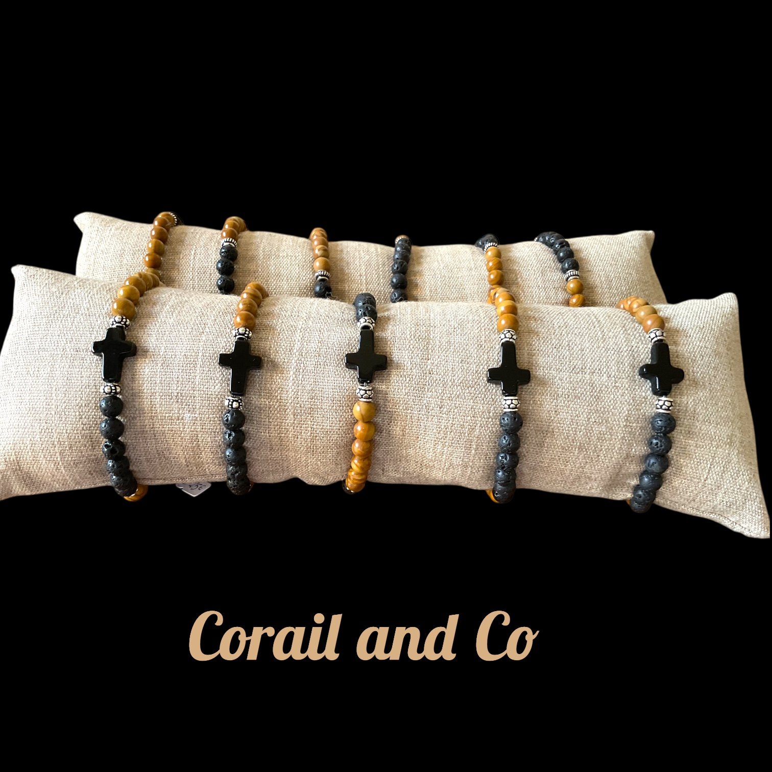 Découvrez mes élégants bracelets pour hommes classiques en perles de lave et perles en bois fossilisé, agrémentés de magnifiques perles d'argent et de croix en onyx. Des modèles intemporels,...