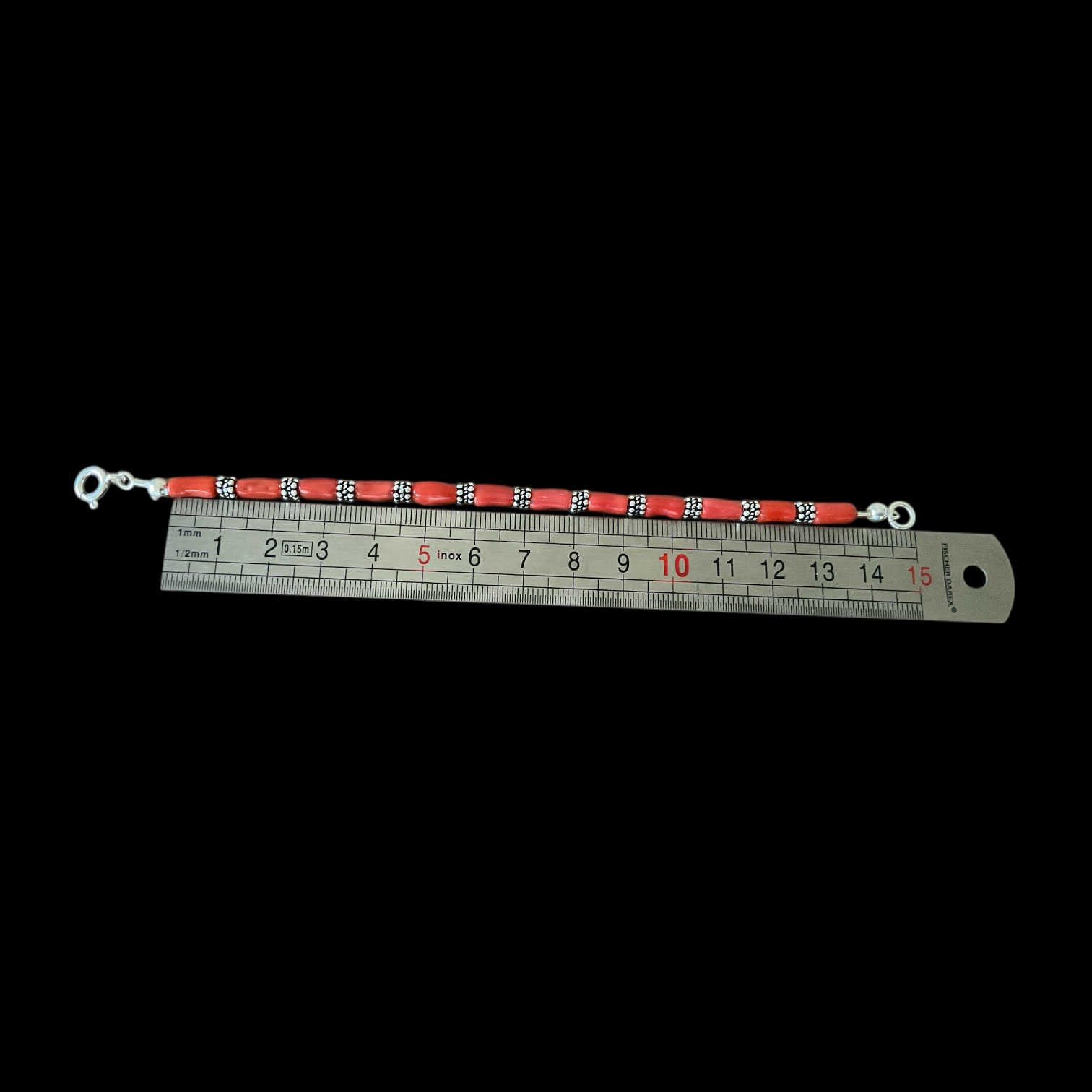 Découvrez notre bracelet en corail rouge de Méditerranée, un bijou exceptionnel qui mêle nature et sophistication. Ce modèle unique est agrémenté de tubes de corail entrecroisés avec de délicates perles d'argent finement travaillées, offrant un éclat subtil à votre poignet.