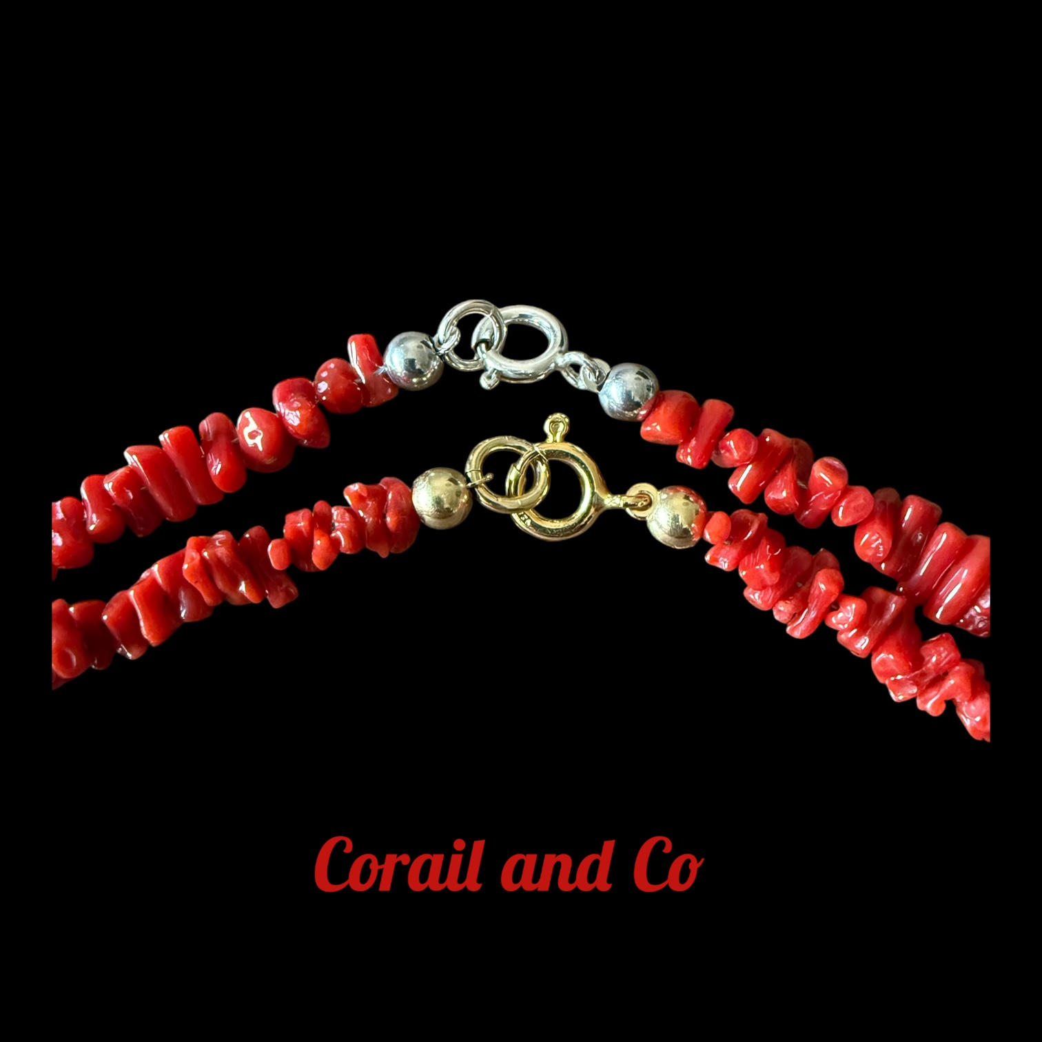 Bijoux en corail rouge de Méditerranée et pierres semi-précieuses.