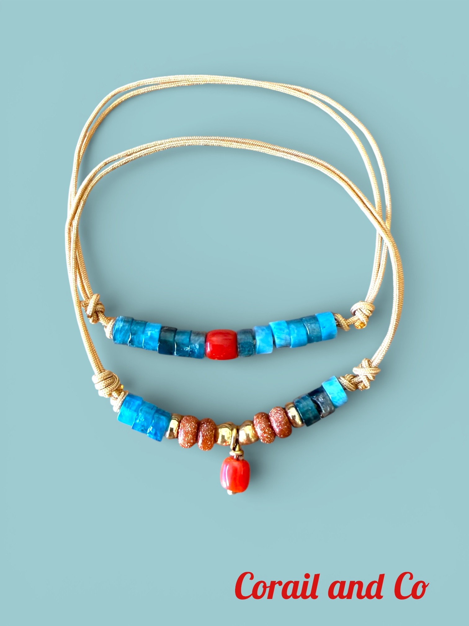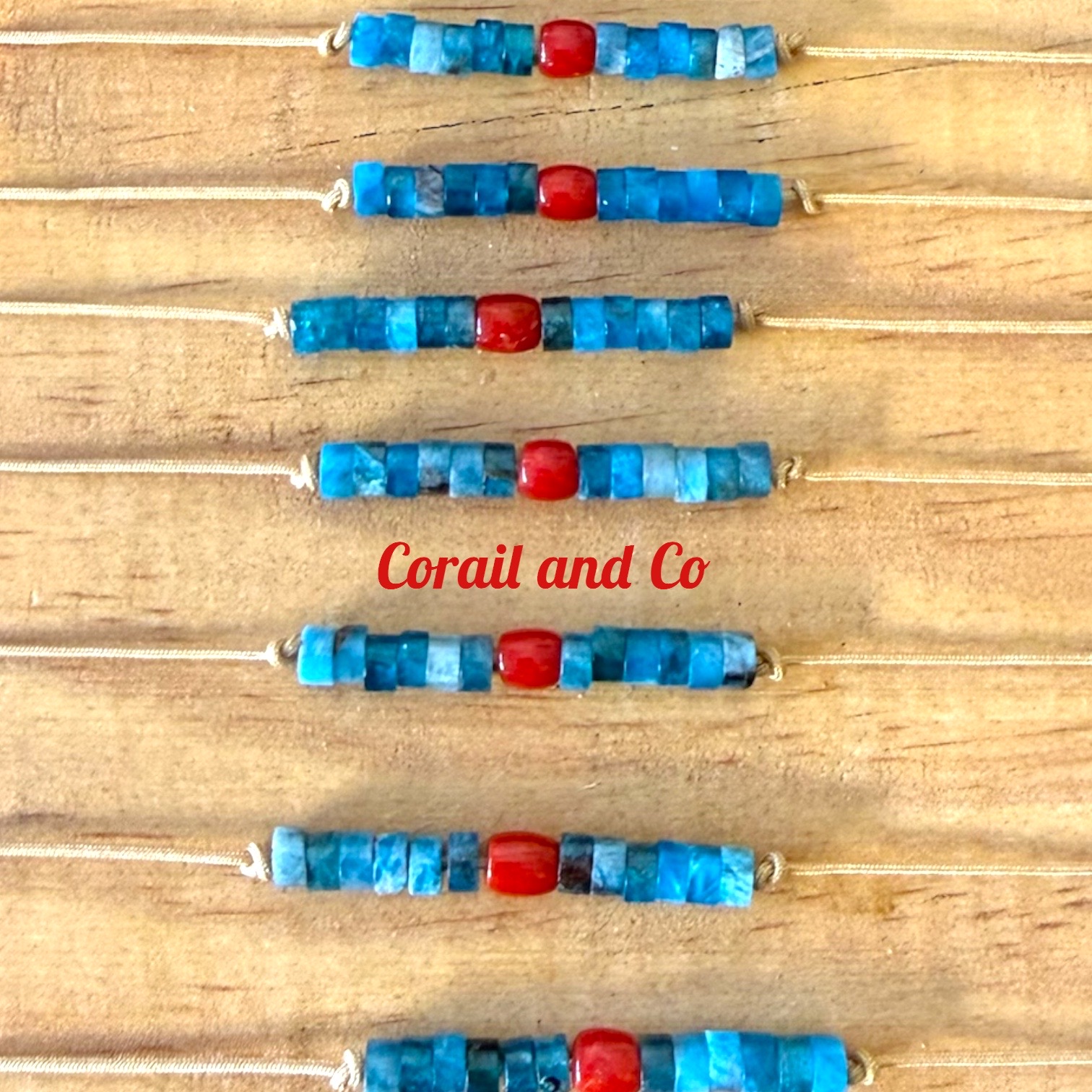 Découvrez ce bracelet sur cordon avec son fragment central en corail rouge de Méditerranée et ces rondelles d'apatites à la fraicheur turquoise ... deux pierres qui dansent ensemble pour sublimer votre poignet !