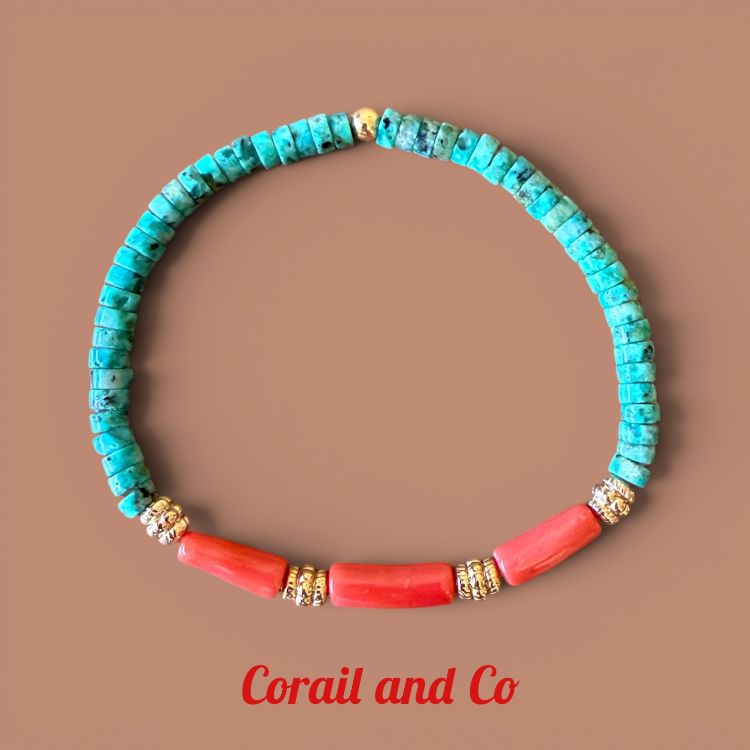 Illuminez votre quotidien d'une touche de soleil corse avec ce bracelet femme corail turquoise et or. Imaginez la chaleur vibrante du corail rouge de Méditerranée caressant votre peau, mêlée à l'éclat subtil de la turquoise et à la brillance intemporelle de l'acier inoxydable doré . Une création artisanale qui évoque l'île de Beauté, pour un style raffiné et authentique qui ne passe pas inaperçu.